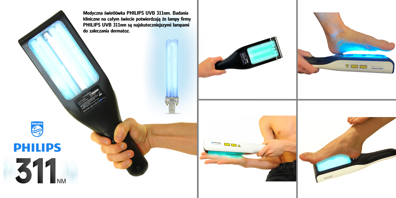 - Świetlówka medyczna UVB 311nm PHILIPS PL-S 8W/01 4p, pozwala wykonać szeroki zakres działań terapeutycznych. Badania kliniczne na całym świecie wskazują, że lampy UVB 311 nm firmy Philips są najskuteczniejszymi obecnie dostępnymi lampami do leczenia. Lekarze określając pacjentom dawki naświetlania uzależniają je od wartości natężenia napromieniowania ustalonej dla świetlówki Philips PL-S 8W/01 4p.